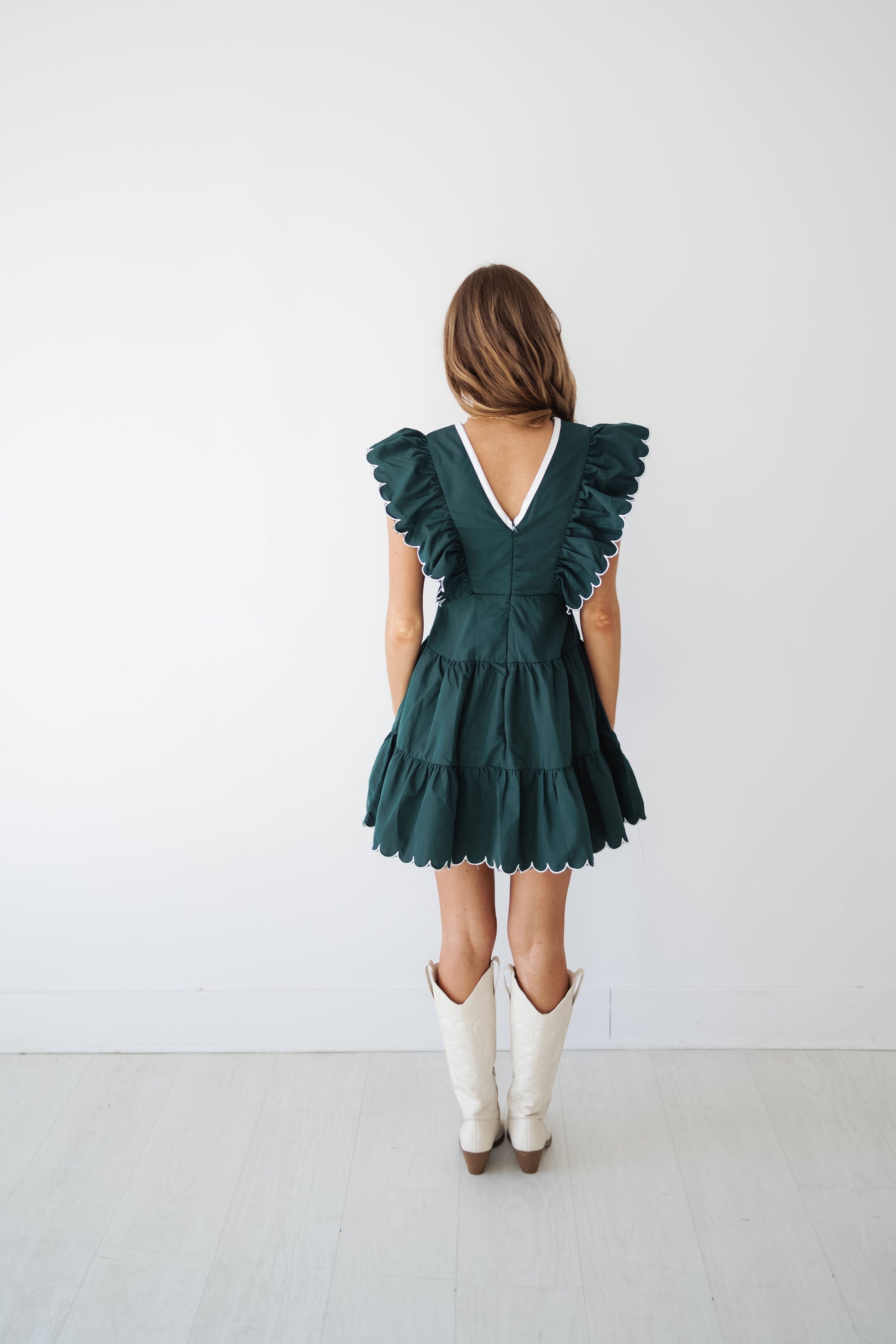 Be effortlessly charming in the "Paisley Dress!" The perfect mix of fall colors and elevated details! Adorned with a hunter green base and scalloped edges on the flowy sleeves, this dress would be so stunning for family pictures or date night! The v-neckline is effortlessly flattering and adds a flirty detail!