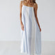 Unwind in the "Summer Lovin' Dress!" We can't get enough of this white and blue midi dress! It features adjustable spaghetti straps and the most stunning fit-and-flare design that is so flattering! Perfect to pair with sandals for an evening on the beach, this dress is casual yet elevated!